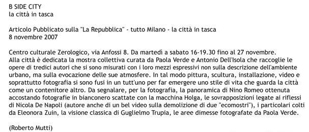 06.11.07 / 27.11.07 CENTRO CULTURALE ZEROLOGICO, via Anfossi 18, Milano